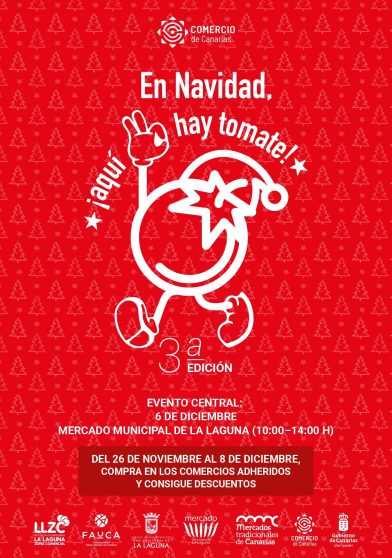 El Mercado Municipal de La Laguna, ubicado en la plaza del Cristo, albergará el próximo sábado, 6 de diciembre, una jornada especial de dinamización que llevará por lema ‘En Navidad, aquí hay tomate’. La propuesta está impulsada por la Dirección General de Comercio y Consumo del Gobierno de Canarias y que con la colaboración del Ayuntamiento del municipio y la Asociación la Laguna Zona Comercial.