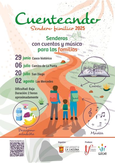 El Ayuntamiento de La Laguna, a través de la concejalía de Educación y Juventud, ha abierto el plazo de preinscripción para participar en la segunda edición de ‘CuenteAndo’, una propuesta de ocio cultural y familiar que combina senderismo, cuentos y actuaciones musicales en rincones naturales del municipio. Esta nueva cita se celebrará el próximo sábado 6 de julio en el Camino de La Punta, con plazas limitadas y previa inscripción a través del portal oficial del proyecto.